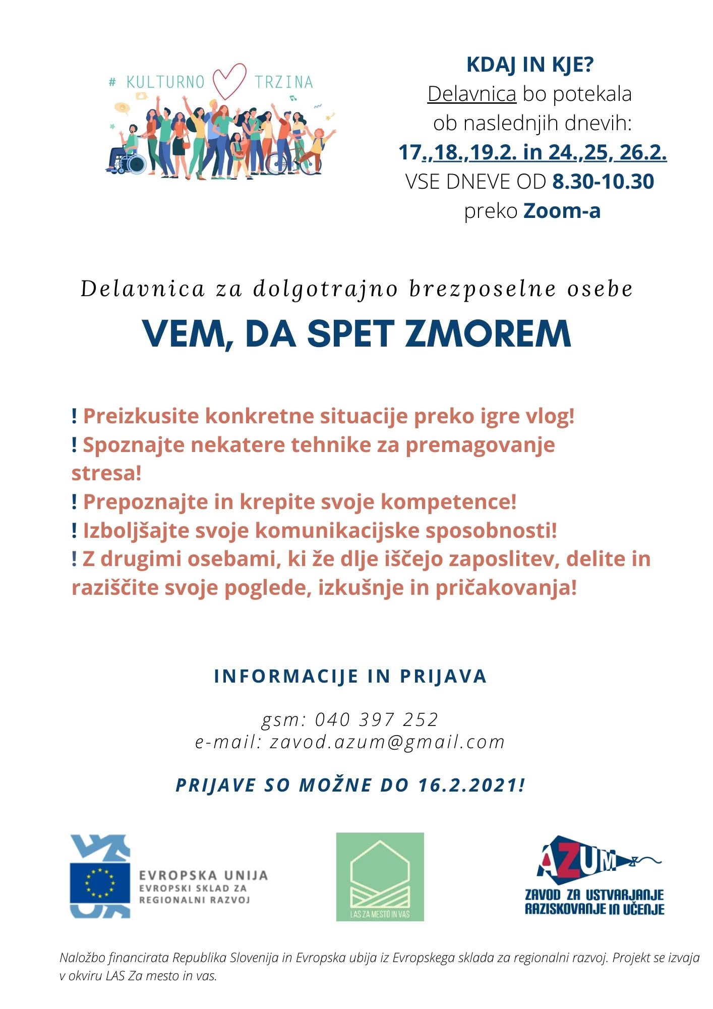 Prva delavnica za dolgotrajno brezposelne osebe! 4 februarja, 2021 Zavod Azum Deli: Click to share on X (Opens in new window) X Click to share on Facebook (Opens in new window) Facebook Všeč mi je Nalaganje ... Povezano Objavil Zavod Azum V Zavodu Azum združujemo umetnost in dobrobit - tako telesno kot duševno. To z veseljem delimo z drugimi. Oglejte si vse prispevke od Zavod Azum
