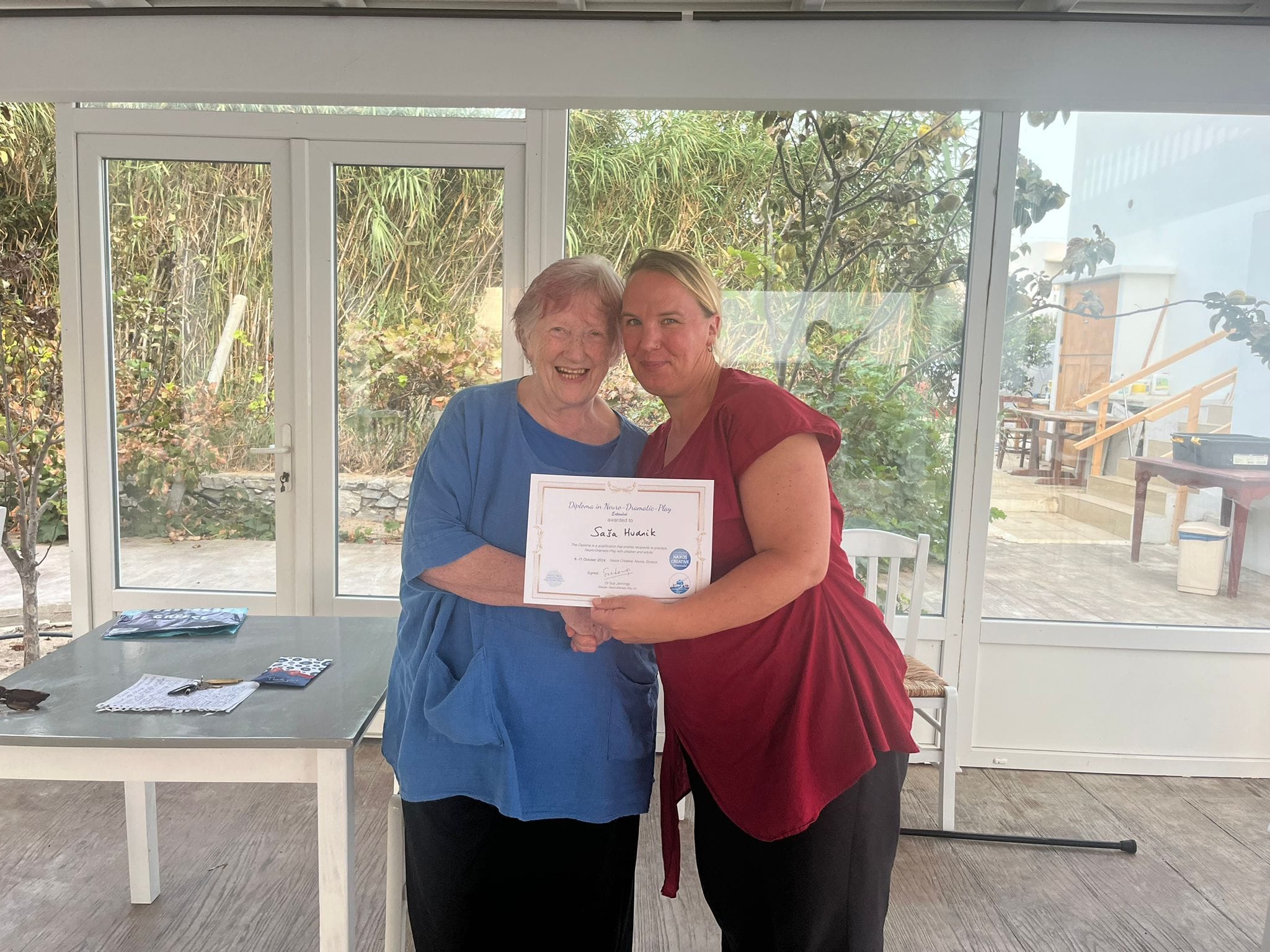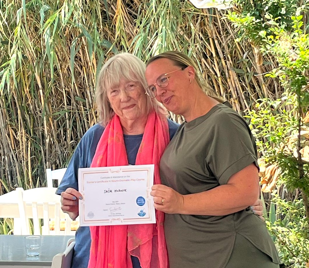 Saša Hudnik, magistrica pomoči z umetnostjo in ustanoviteljica Zavoda Azum, svoje dragoceno znanje, ki ga je pridobila pod neposrednim mentorstvom Dr. Sue, uporablja pri svojem delu tako z otroki kot z ostalimi ranljivimi osebami (otroci in odrasli z motnjo v duševnem razvoju, otroci in najstniki s čustvenimi težavami). Ker si želi to znanje in s tem dediščino izjemne mentorice tudi predajati naprej, je v maju 2025 zaključila z nadaljnjim izobraževanjem in pridobila naziv certificirana trenerka NDP. Tako je kvalificirana za izvajanje nevrodramske igre z otroki in odraslimi ter za vodenje izobraževanj s področja nevrodramske igre, kar je rezultat dveletnega izobraževanja in napredovanja z začetne na nadaljevalno stopnjo usposobljenosti za izvajanje navrodramske igre ter naprej na pridobitve certifikata za trenerko.
